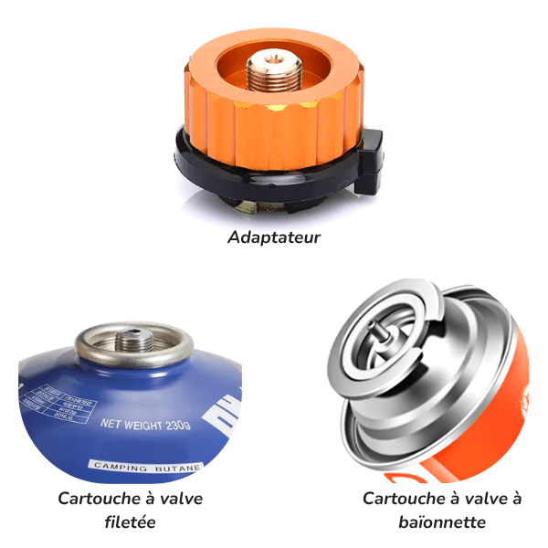 Nos réchauds sont compatibles avec les cartouches à valve filetée EN 417 (vissables).