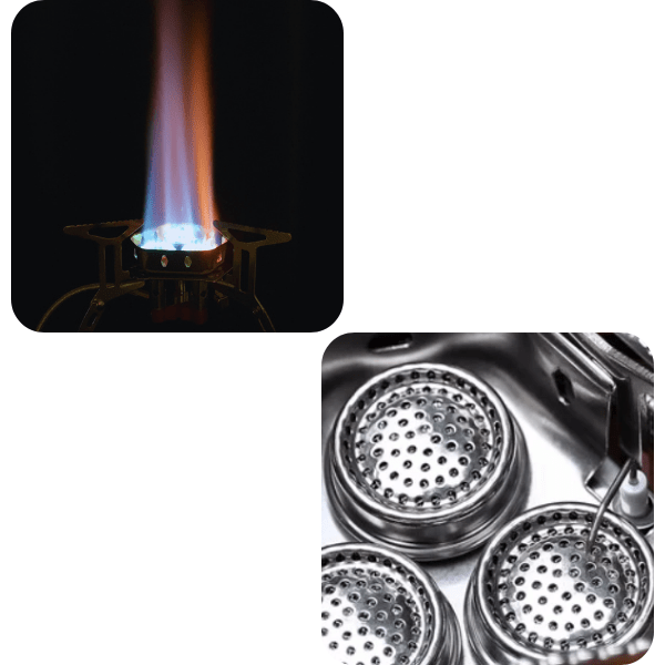 Le pare-vent améliore la stabilité de la flamme, lui permettant de rester régulière et d’éviter toute extinction inopinée.